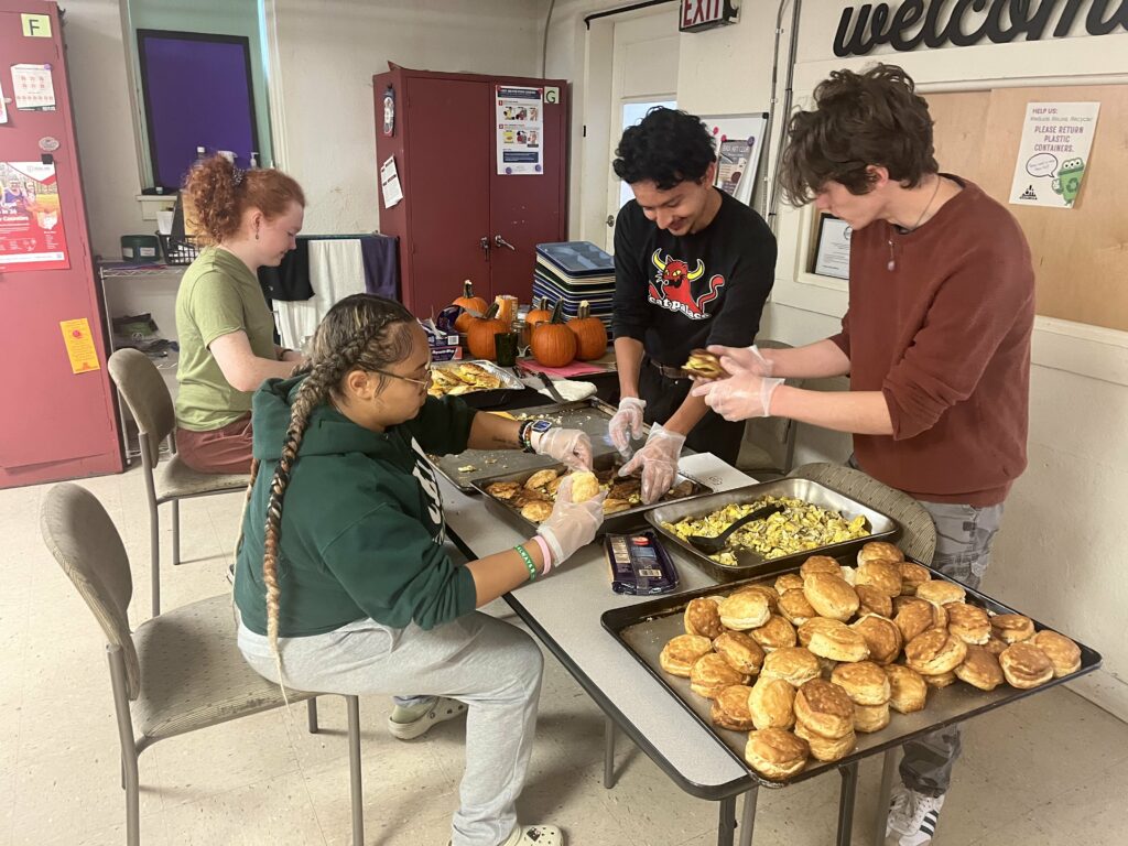 - Free Community Meals: Plan menus, gather food donations and purchases, coordinate volunteers, interact with guests, and provide a clean and welcoming environment